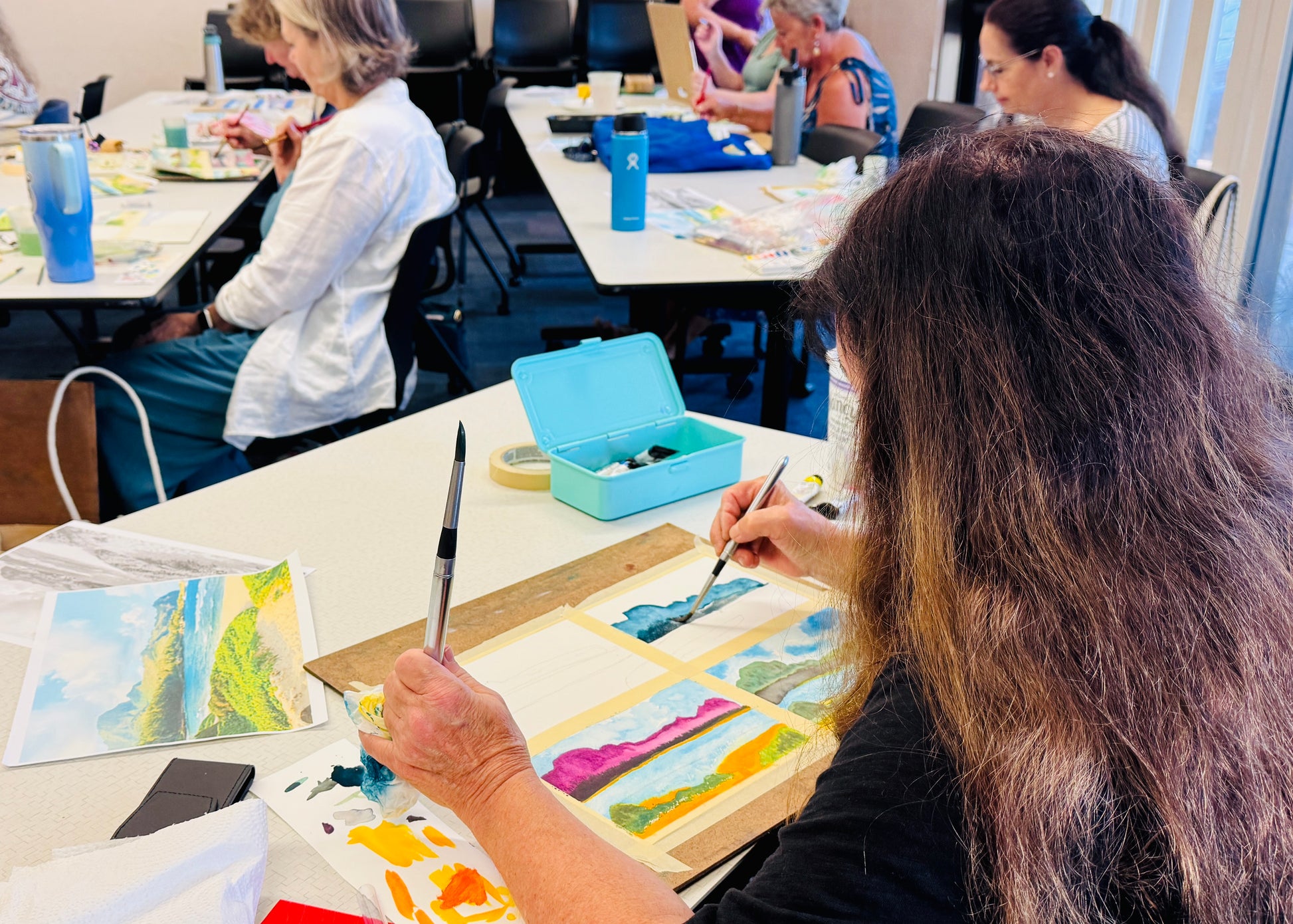 This is a small class, focusing on mastering the art of watercolor painting, with lots of individual instruction so it's perfect for students at every level of experience, including beginners. The class is designed for adults, however teens are also welcome and occasionally I have home-schoolers attend.